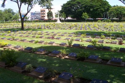 | Soldatenfriedhof in Kanchanabouri. Hier liegen ca. 6900 alliierte Soldaten. | ![]() |