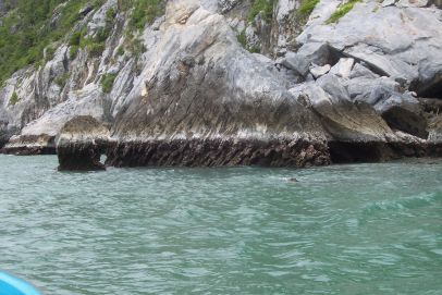 | Vom Wasser gegerbte Felsen |